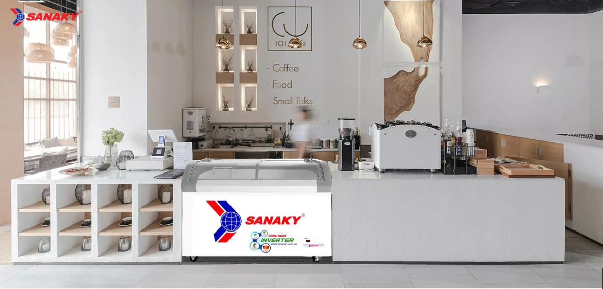 Đèn LED chiếu sáng giúp màu sắc thực phẩm trong tủ thêm hấp dẫn: Tủ đông Sanaky được thiết kế với hệ thống đèn LED trong thân tủ, chiếu sáng toàn bộ các góc khuất giúp trưng bày các sản phẩm bắt mắt và thu hút. Hơn nữa, hệ thống đèn LED còn tiết kiệm điện năng và có tuổi thọ bền bỉ hơn nhiều lần so với các loại đèn huỳnh quang, đèn sợi đốt,… mang lại giá trị sử dụng lâu dài cho người sử dụng.