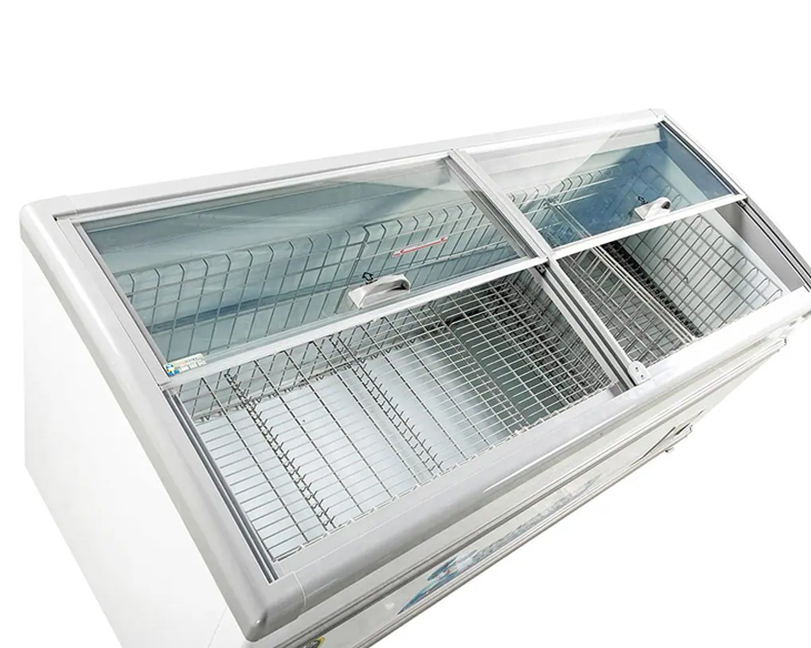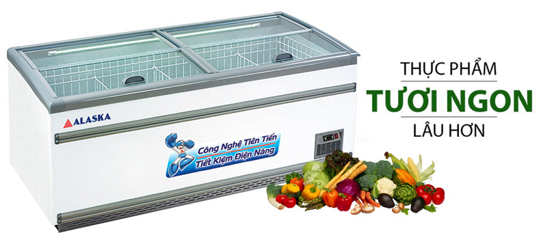 Chiếc tủ đông Alaska này với thiết kế cửa kính đặc biệt mở trượt lên (thay vì trượt ngang) cho phép ít nhất 2 khách hàng sử dụng tủ cùng 1 lúc.
