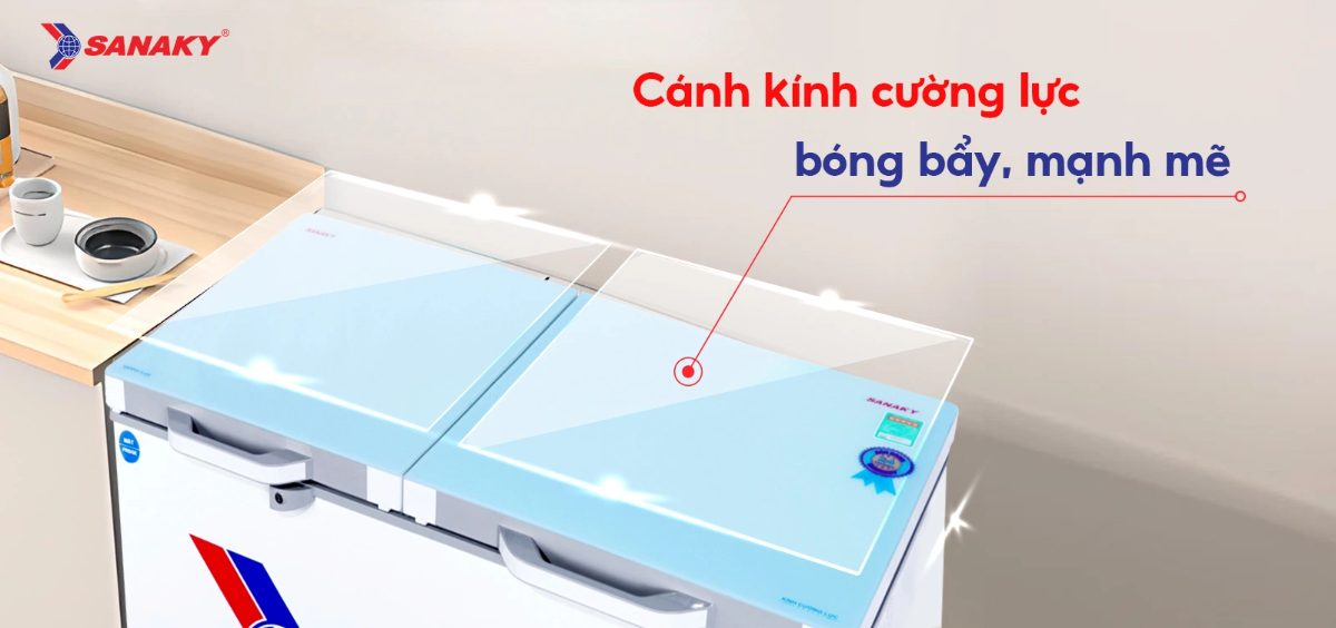 Với môi trường khí hậu nhiệt đới thay đổi liên tục như ở Việt Nam chính là tác động làm cánh thép thế hệ cũ dễ bị hoen rỉ. Lớp kính cường lực của tủ đông Sanaky giúp dễ vệ sinh lau chùi khi sử dụng