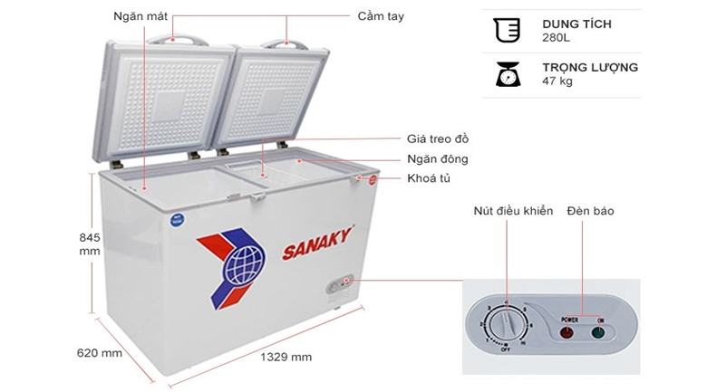 Tủ Đông SANAKY 280 Lít VH-405W2: thích hợp để bảo quản kem, thịt, cá, đồ đông lạnh,… Ngoài ra, tủ phẳng kết hợp với quạt giúp làm lạnh nhanh và sâu, đảm bảo thực phẩm luôn tươi ngon trong một thời gian dài.