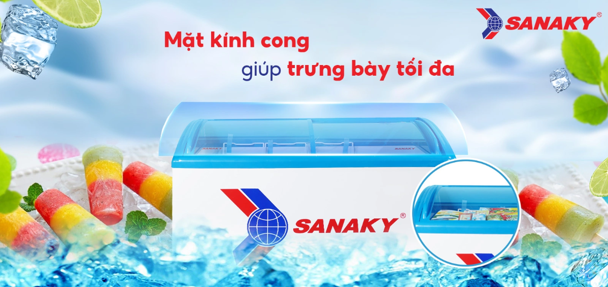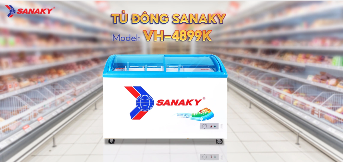 Tủ đông Sanaky VH-4899K là dòng tủ đông kính cong phù hợp sử dụng trưng bày hàng hóa với dung tích 340 Lít được trang bị công nghệ làm lạnh số 1 Việt Nam, tủ được ứng dụng nhiều cho các tiệm tạp hóa, siêu thị, nhà hàng,…