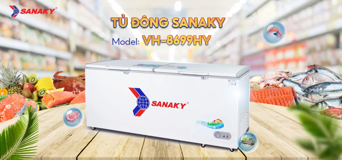 Tủ Đông Sanaky VH-8699HY có dung tích 761 Lít và thiết kế 1 ngăn đông 2 cánh mở sở hữu công nghệ làm lạnh số 1 Việt Nam giúp đáp ứng mọi nhu cầu bảo quản thực phẩm của bạn. Sản phẩm này là sự lựa chọn lý tưởng cho gia đình kinh doanh tạp hóa, siêu thị, quán ăn, nhà hàng,…cần dự trữ thực phẩm với khối lượng lớn