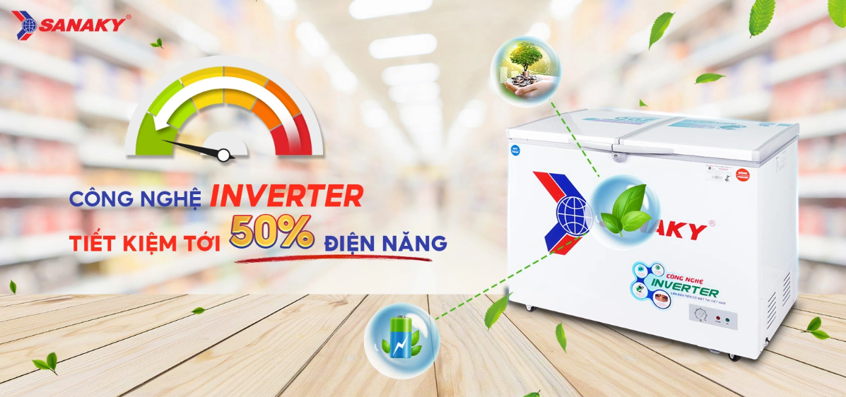 Tủ Đông Sanaky VH-2599W3 sở hữu công nghệ Smart Inverter giúp thực phẩm trong tủ được bảo quản tươi ngon và kéo dài thời gian sử dụng hơn nhờ cơ chế làm lạnh nhanh và duy trì độ ẩm tốt.