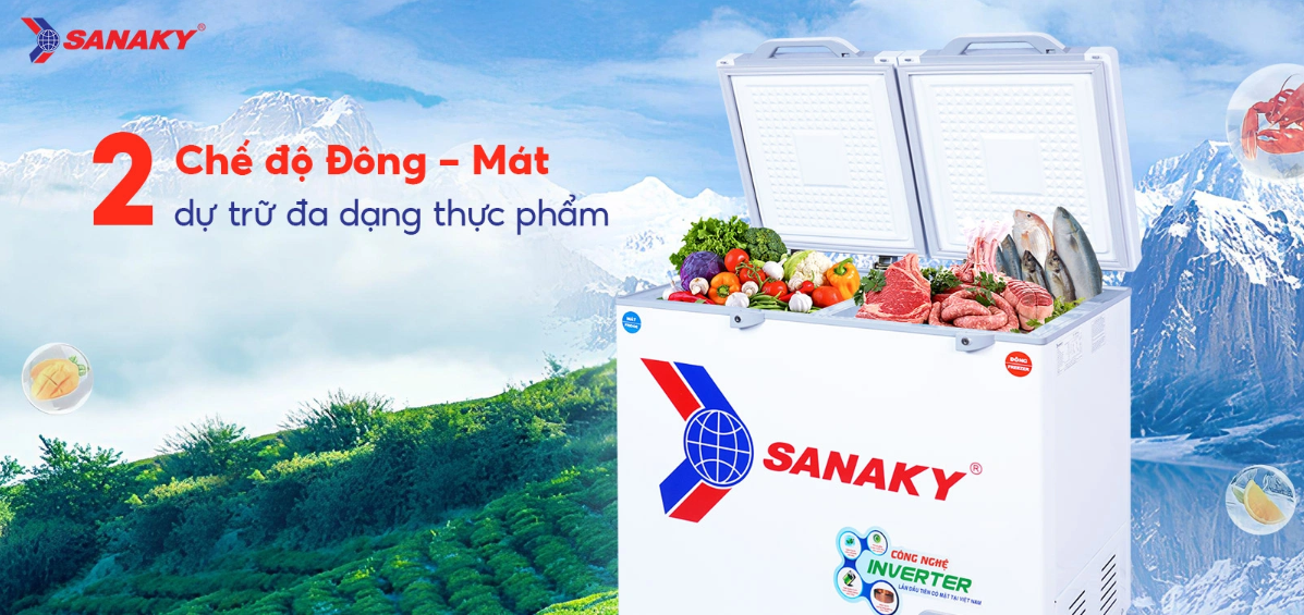 Tủ Đông Sanaky VH-2599W4K sở hữu công nghệ Smart Inverter giúp thực phẩm trong tủ được bảo quản tươi ngon và kéo dài thời gian sử dụng hơn nhờ cơ chế làm lạnh nhanh và duy trì độ ẩm tốt.