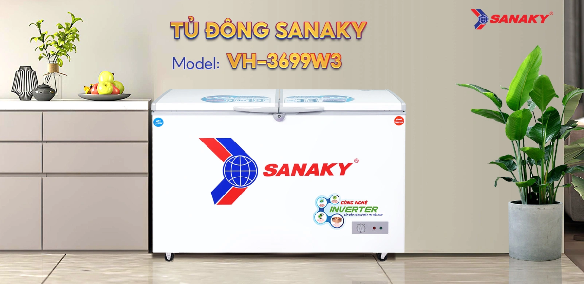 Tủ Đông Sanaky VH-3699W3 sở hữu công nghệ Smart Inverter giúp thực phẩm trong tủ được bảo quản tươi ngon và kéo dài thời gian sử dụng hơn nhờ cơ chế làm lạnh nhanh và duy trì độ ẩm tốt.