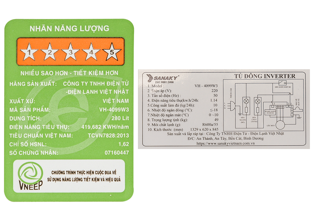 Tủ đông Sanaky VH-4099W3 đem đến sự tiết kiệm điện đáng kể nhờ vào công nghệ Inverter, công nghệ này giúp máy nén hoạt động êm ái, khả năng vận hành bền bỉ đem đến sự bảo quản thực phẩm tuyệt vời cho bạn.