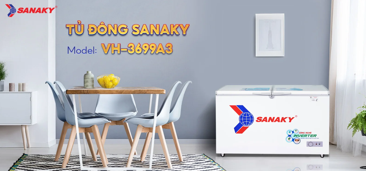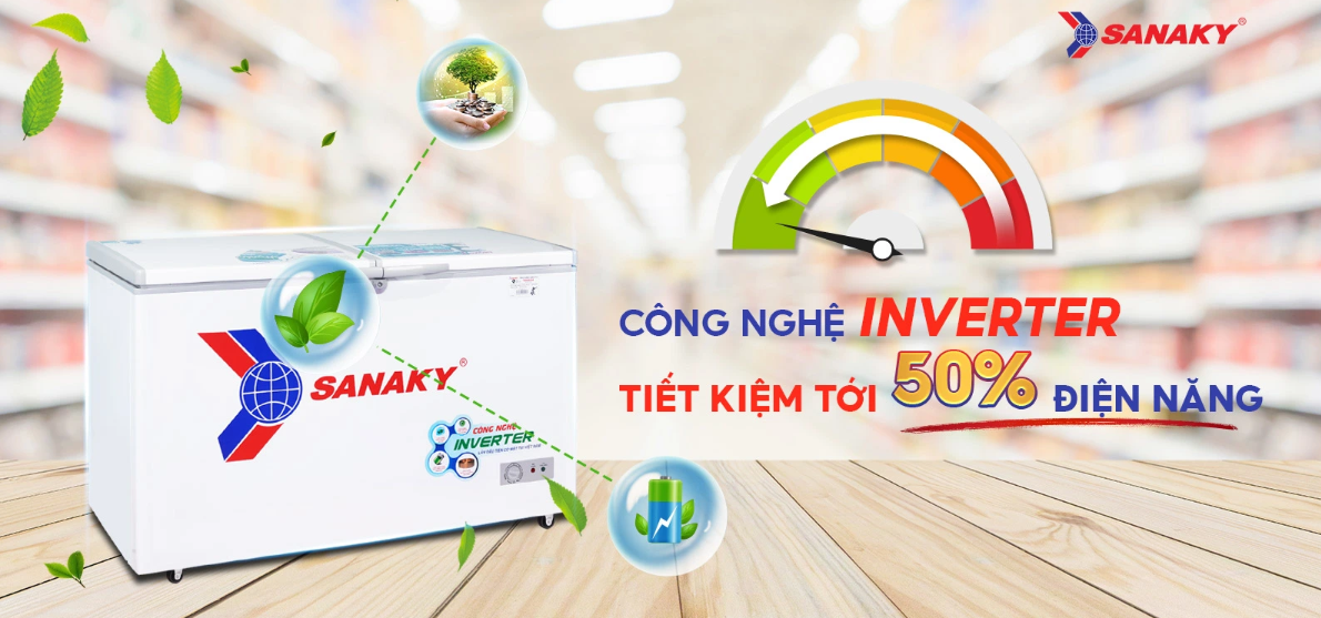Tủ Đông Sanaky VH-3699A3 sở hữu công nghệ Smart Inverter giúp thực phẩm trong tủ được bảo quản tươi ngon và kéo dài thời gian sử dụng hơn nhờ cơ chế làm lạnh nhanh và duy trì độ ẩm tốt.
