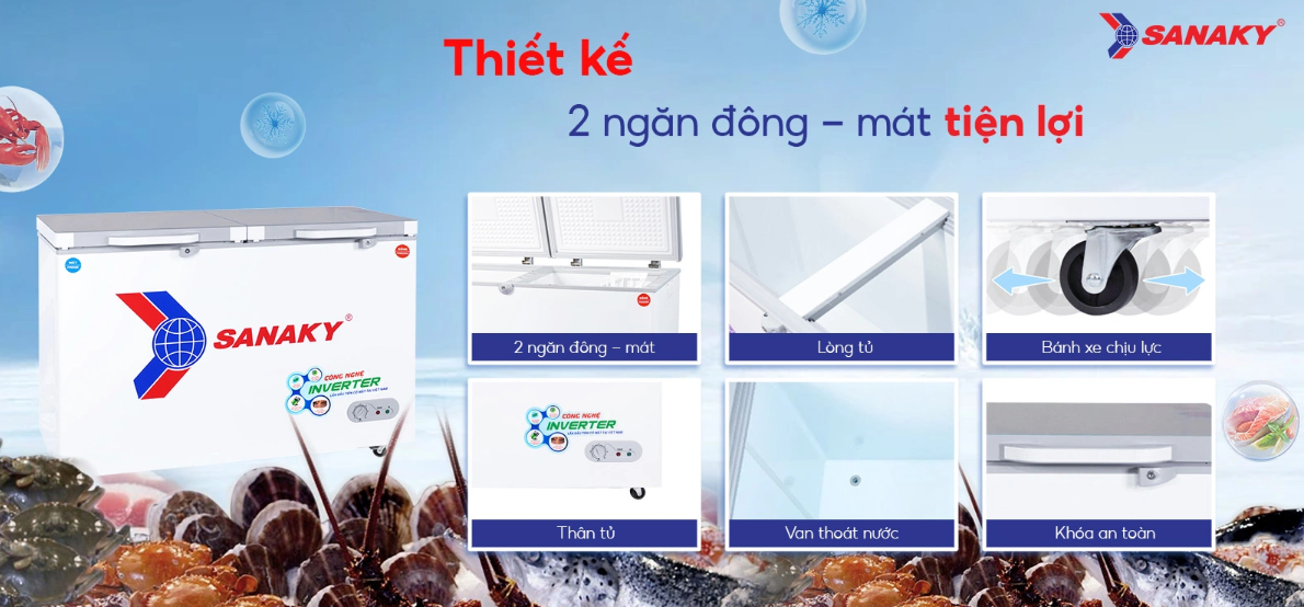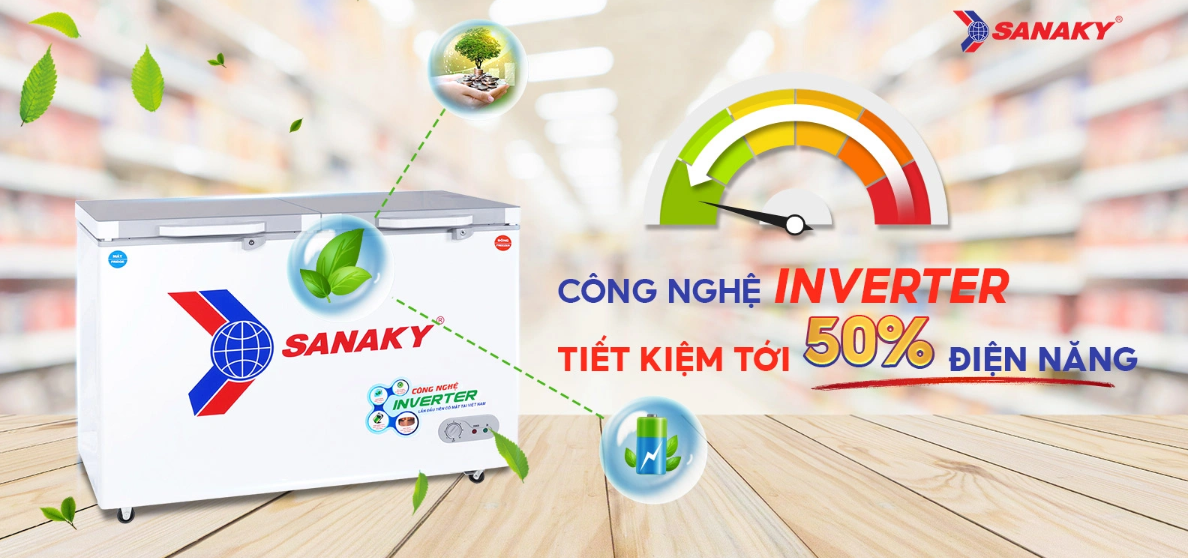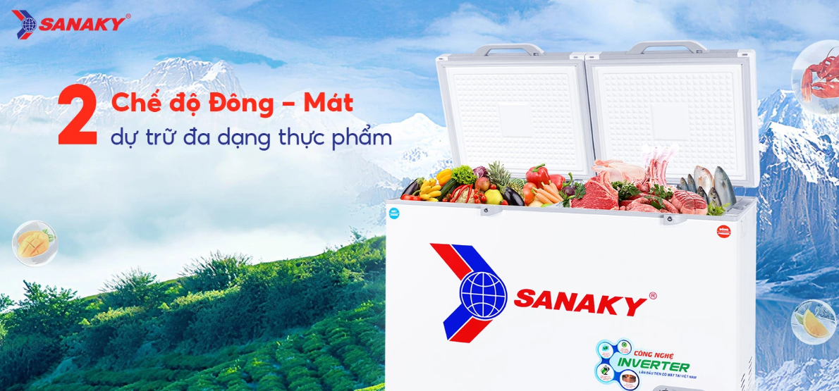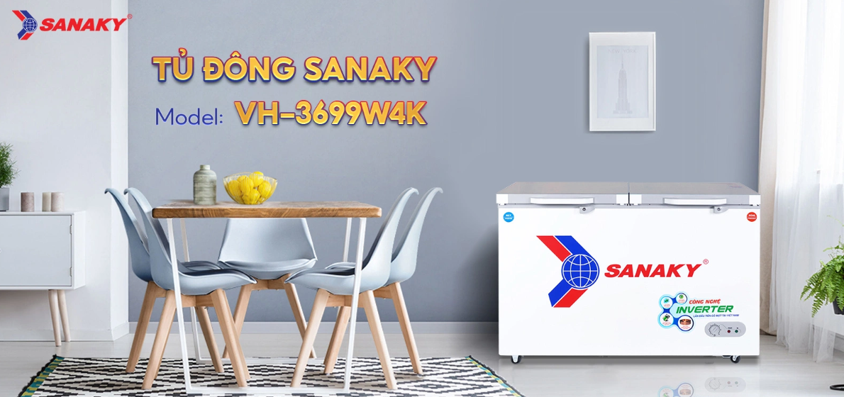 Tủ Đông Sanaky VH-3699W4K sở hữu công nghệ Smart Inverter giúp thực phẩm trong tủ được bảo quản tươi ngon và kéo dài thời gian sử dụng hơn nhờ cơ chế làm lạnh nhanh và duy trì độ ẩm tốt.