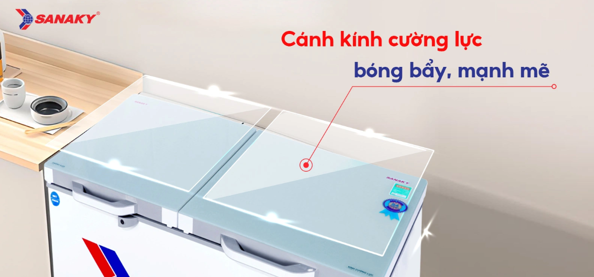Với môi trường khí hậu nhiệt đới thay đổi liên tục như ở Việt Nam chính là tác động làm cánh thép thế hệ cũ dễ bị hoen rỉ. Lớp kính cường lực của tủ đông Sanaky giúp dễ vệ sinh lau chùi khi sử dụng
