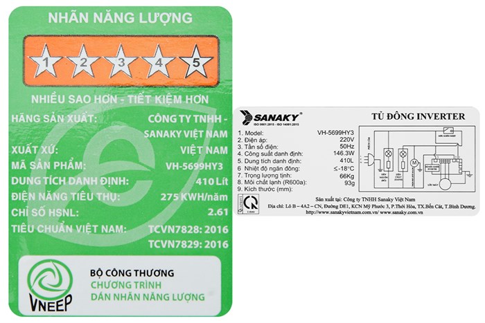 – Tủ đông Sanaky sử dụng gas R600a là loại gas có khả năng làm lạnh nhanh và thân thiện với môi trường xung quanh.