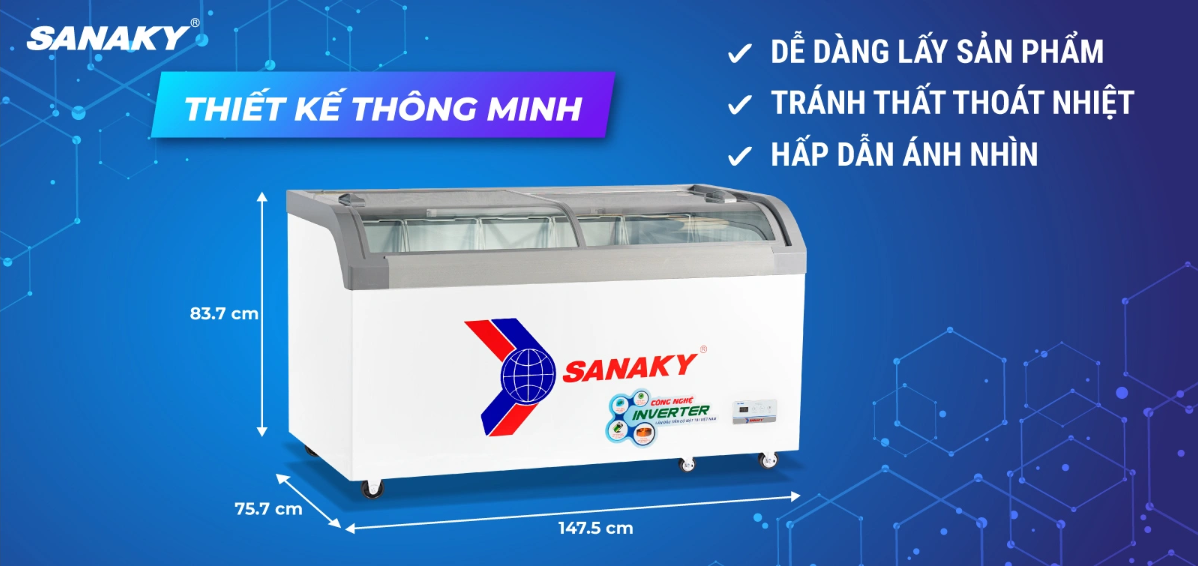 Thiết kế kính cong của Tủ Đông Sanaky VH-899K3A mang đến nhiều ưu điểm vượt trội: