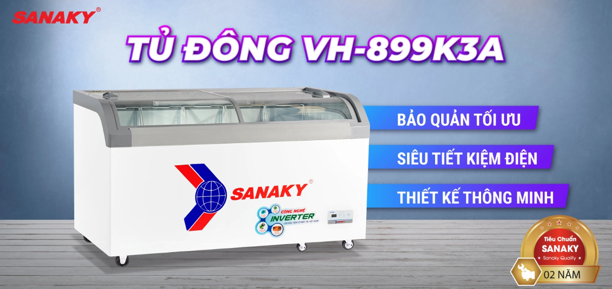 Tủ Đông Sanaky VH-899K3A là dòng tủ đông kính cong phù hợp sử dụng trưng bày hàng hóa với dung tích 500 Lít được trang bị công nghệ làm lạnh số 1 Việt Nam, tủ được ứng dụng nhiều cho các tiệm tạp hóa, siêu thị, nhà hàng,…