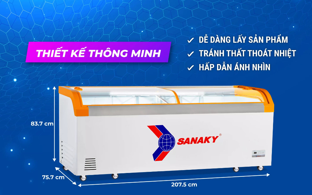 Thiết kế kính cong của Tủ Đông Sanaky VH-1099KA mang đến nhiều ưu điểm vượt trội: