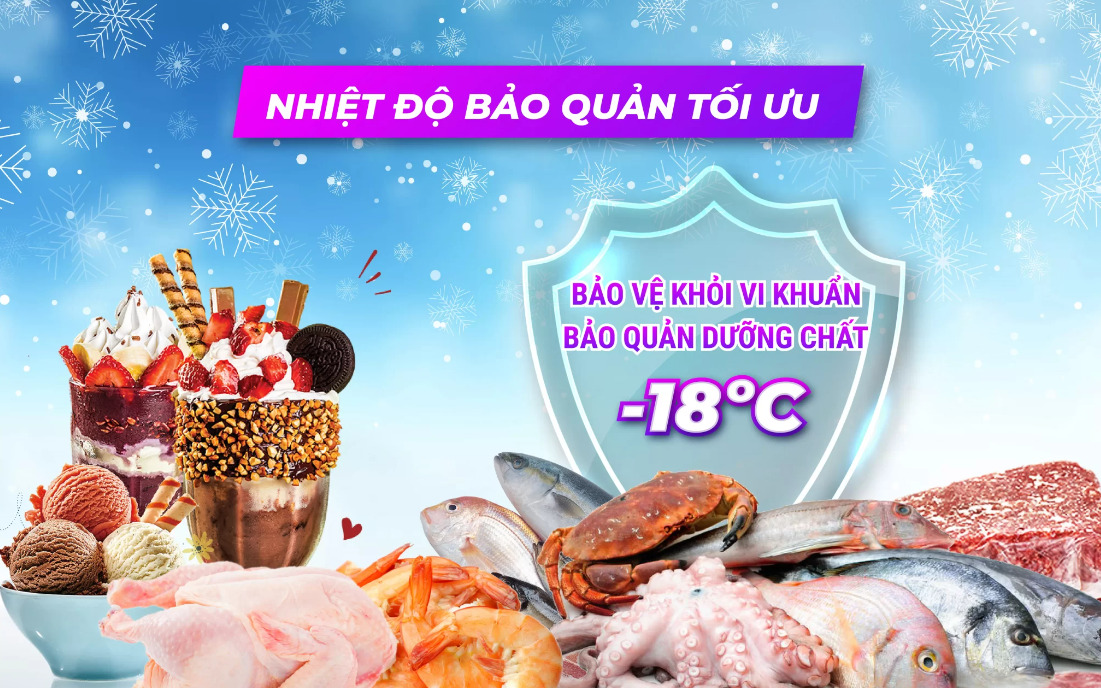 Công nghệ làm lạnh 360 độ: kết hợp với dàn lạnh đồng, công nghệ làm lạnh 360 độ giúp hơi lạnh sẽ được tỏa đều bên trong tủ, tác động toàn diện lên bề mặt thực phẩm, đem đến hiệu quả làm lạnh sâu, đóng đông triệt để.