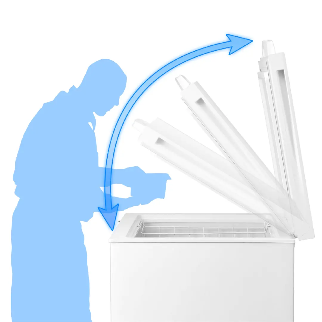 Nắp tủ có thể nâng ở nhiều góc độ, giúp người dùng dễ dàng lấy nguyên liệu mà không cần phải dùng tay hỗ trợ, mang lại sự tiện lợi trong quá trình sử dụng.