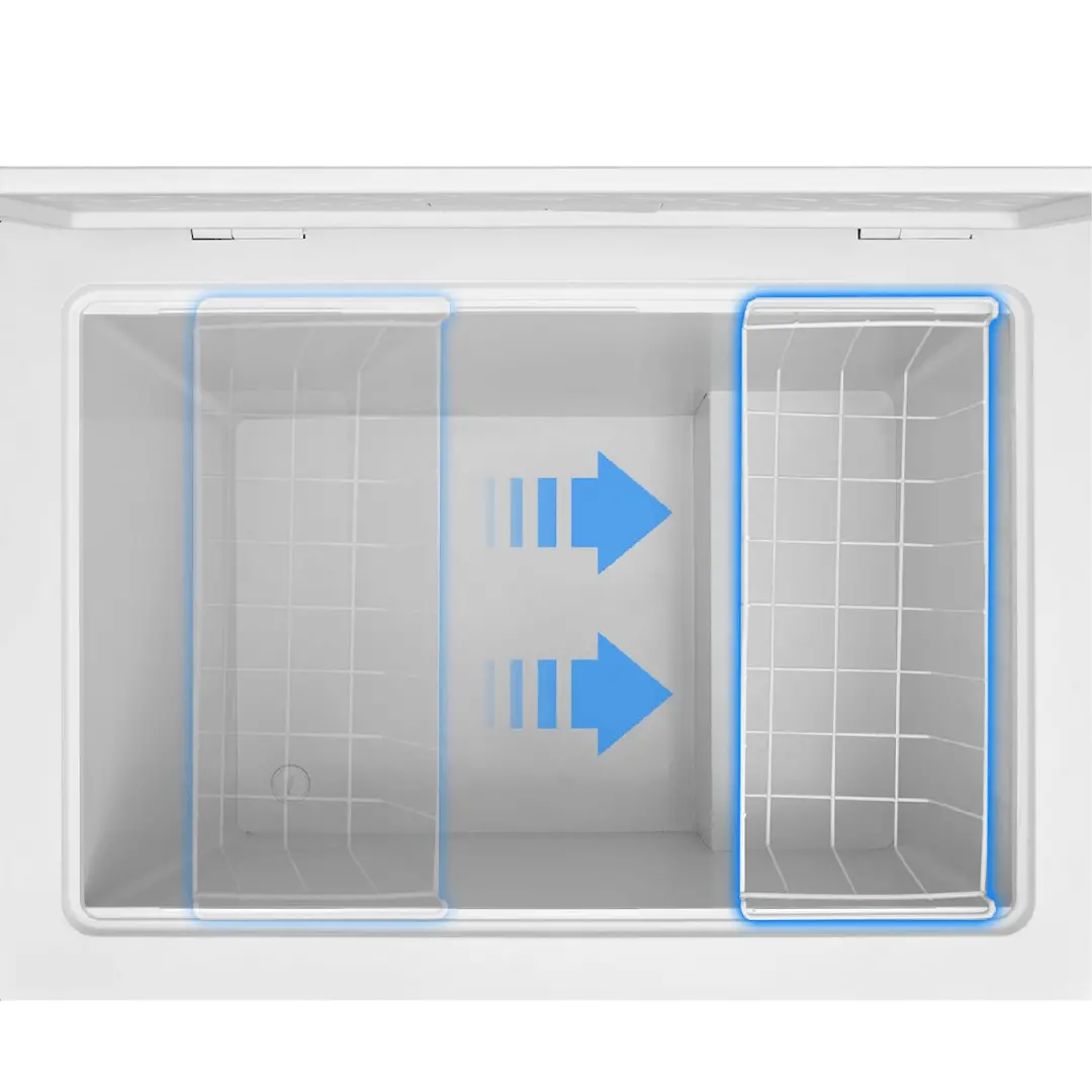 Nội thất tủ sáng màu mang lại sự thông thoáng, sạch sẽ và bền bỉ theo thời gian. Với bề mặt dễ vệ sinh, các vết bẩn có thể được loại bỏ nhanh chóng, giúp tủ đông luôn sạch sẽ, tinh tươm.