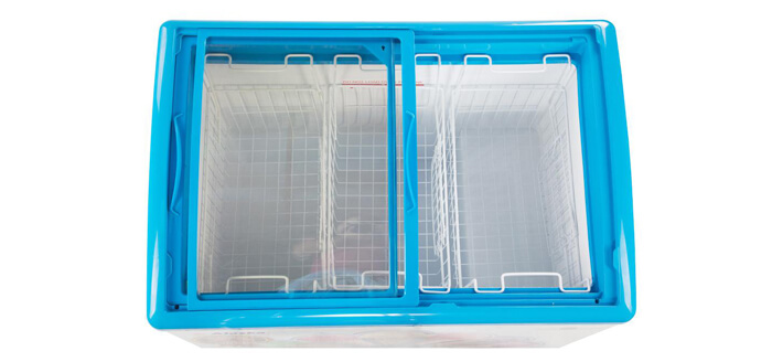Nhiệt độ đạt đến -24oC, khung tủ được đúc nguyên khuôn, không chấp nối, đảm bảo khung tủ không bị biến dạng. Thân tủ bằng thép sơn tĩnh điện độ dày foam cách nhiệt: 70mm. Cửa kính cong, kính phản xạ nhiệt, độ dày kính 40mm, lòng tủ sơn tĩnh điện màu trắng. Có giỏ bên trong tủ, tiện lợi cho việc phân loại các sản phẩm.