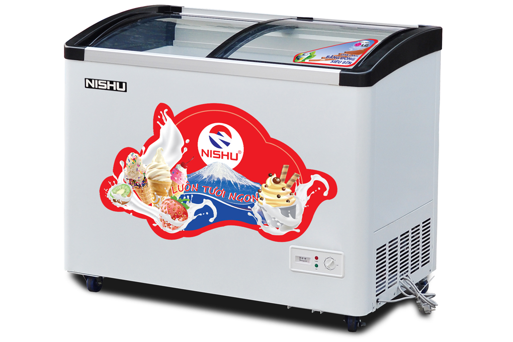 Thiết kế của sản phẩm tủ kem Nishu có 2 cửa kính lùa cong rất giúp khách hàng dễ dàng quan sát được sản phẩm bên trong. Sản phẩm này chỉ có duy nhất một ngăn đông thông suốt rộng rãi. Nhiệt độ trong tủ từ 0 đến -18oC hoàn toàn đáp ứng được nhu cầu bảo quản kem, thịt cá đông lạnh và các sản phẩm thủy hải sản cho các của hàng và siêu thị.