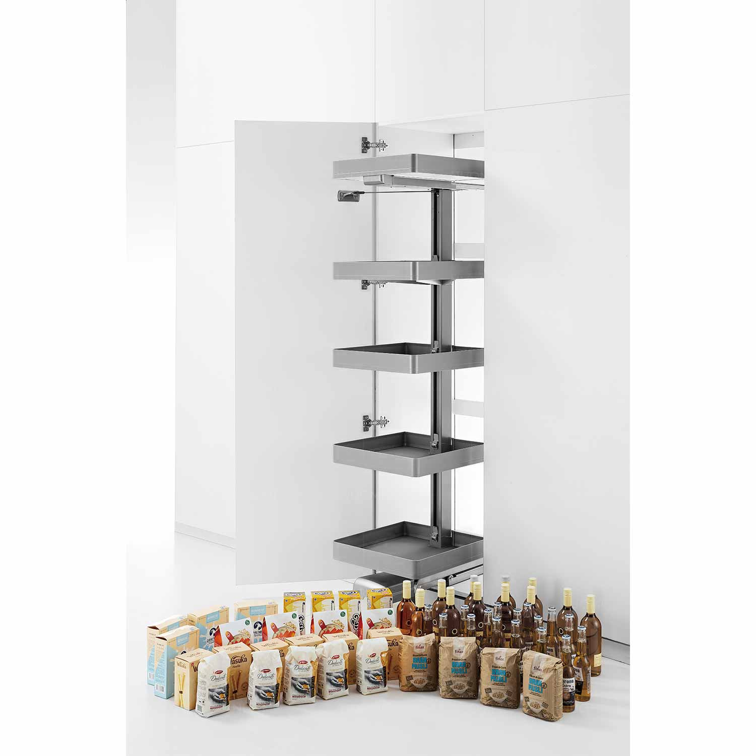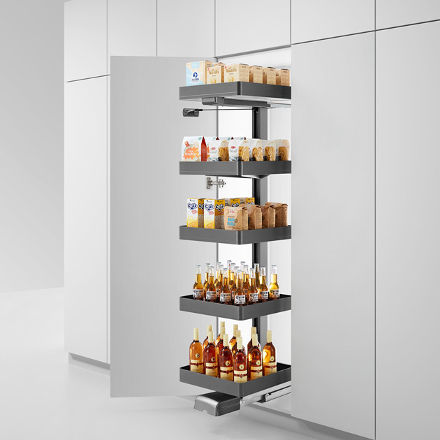 Thay vì xếp đồ đạc một cách không khoa học tạo nên sự bề bộn cho bếp thì tủ kho sẽ đem tới cho bạn sức chứa vô cùng lớn giúp căn bếp luôn sạch sẽ, gọn gàng. Với thiết kế 5 rổ đựng cùng tải trọng 15kg/mỗi rổ, bạn có thể tha hồ cất gọn tất cả các vật dùng, đồ ăn.. vào khoang tủ phía sau cánh cửa tủ.