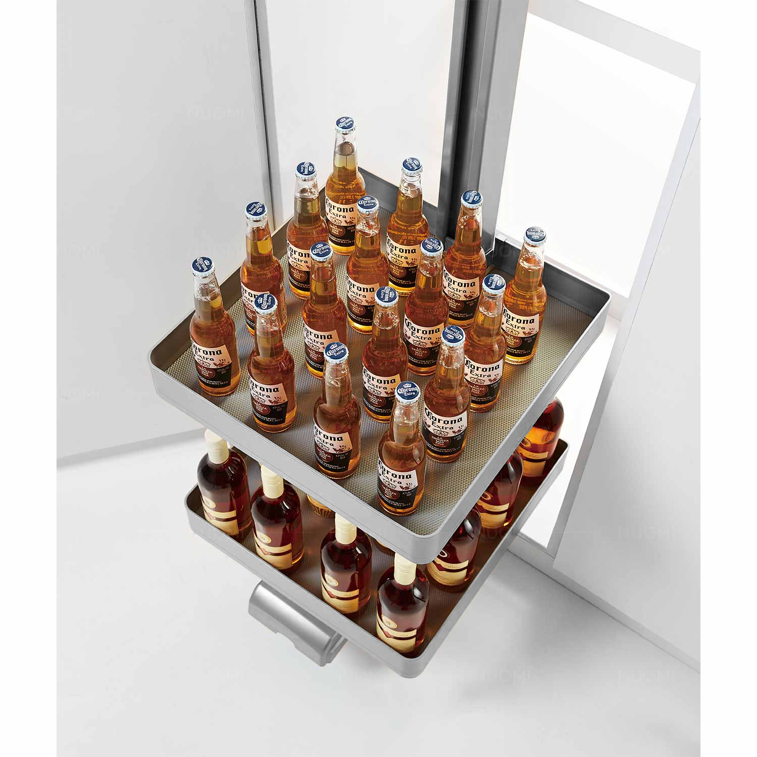 Cấu trúc liên kết độc đáo, đẩy ra tất cả các rổ cùng một lúc khi mở cửa, giúp dễ dàng cất giữ đồ đạc. Thiết kế giảm chấn êm ái, giúp sản phẩm hoạt động trơn tru và ổn định trong quá trình đóng mở. Thiết kế trượt đôi, tăng cường khả năng chịu tải của sản phẩm và giữ cho việc kéo ra ổn định.