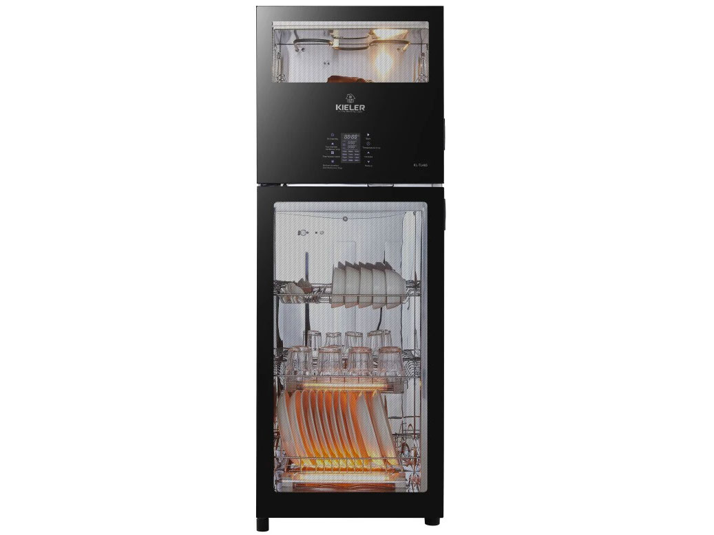 Tủ khử trùng và lò chiên 2 in 1 Kieler KL-TL-465 thiết kế gồm 2 tầng, có thể làm việc độc lập riêng cho từng tầng hoặc kết hợp làm việc cùng lúc.