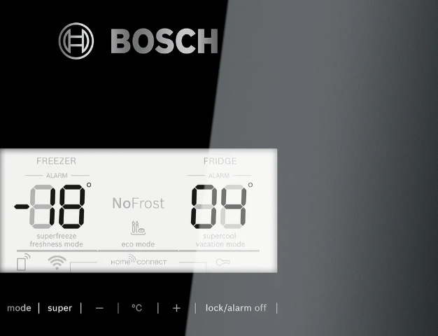 Tủ lạnh Bosch KGN56LB40O serie 6 được trang bị bảng điều khiển cảm ứng tùy chỉnh nhiệt độ với thiết kế tối giản. Điều này giúp người dùng dễ dàng sử dụng được những tiện ích của tủ lạnh đem lại. Đồng thời kiểm soát được mức nhiệt trong tủ lạnh một cách nhanh chóng tại tủ mát riêng và tủ đông riêng.