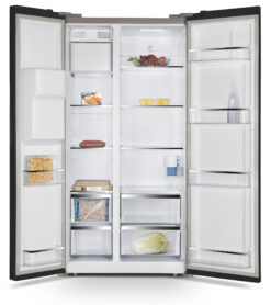 Tủ lạnh Kaff KF-SBS600GLASS sở hữu thiết kế sang trọng với cửa kính đen bóng không chỉ mang đến vẻ đẹp hiện đại cho không gian bếp mà còn giúp dễ dàng vệ sinh.