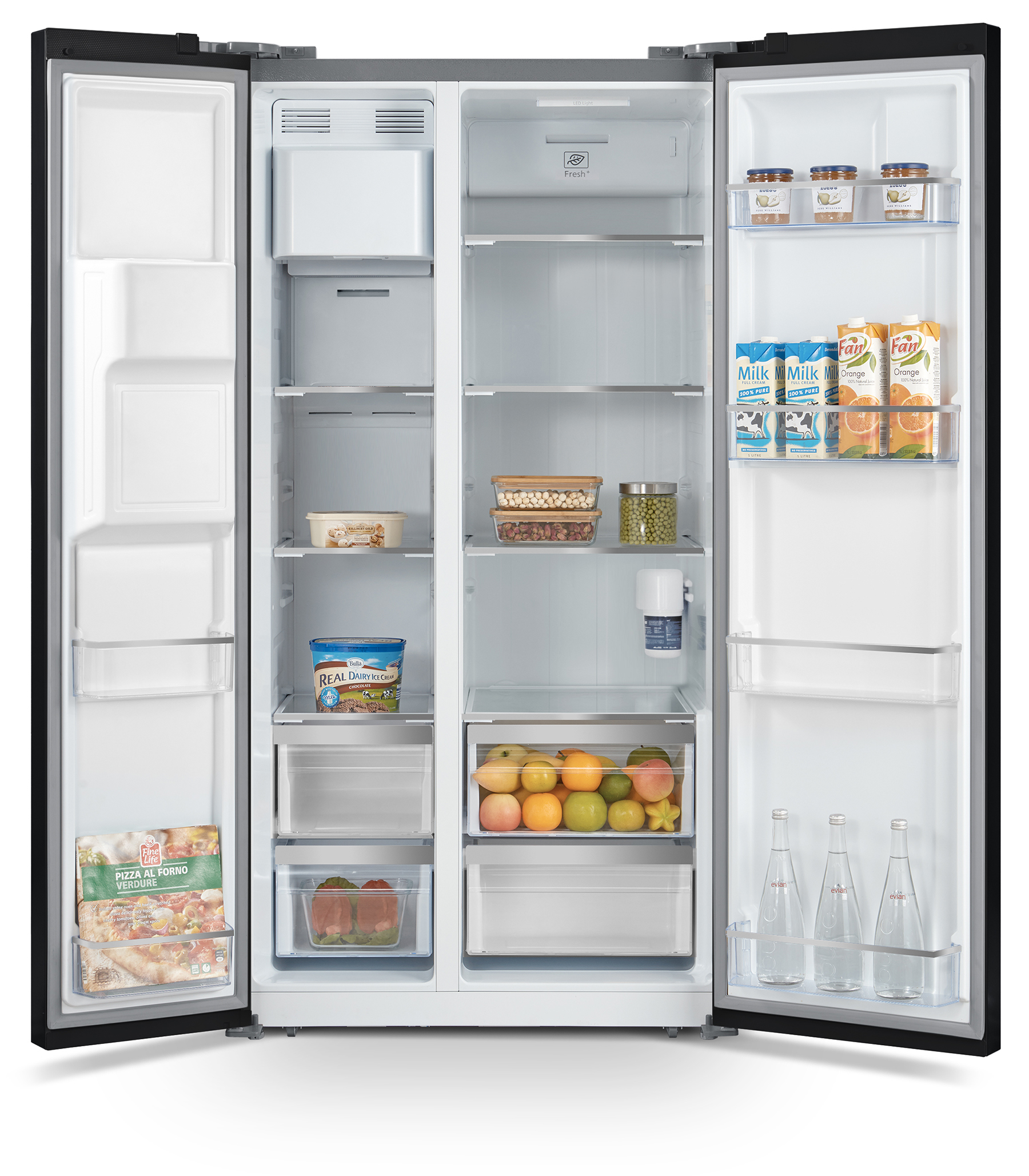 Bên trong tủ lạnh, các ngăn kệ và ngăn kéo có thể điều chỉnh linh hoạt giúp bạn dễ dàng phân loại và sắp xếp thực phẩm một cách khoa học. Đặc biệt, các ngăn chứa thực phẩm tươi sống như rau củ, trái cây và thịt đều được thiết kế với môi trường bảo quản tối ưu, giúp thực phẩm giữ được độ tươi lâu hơn.