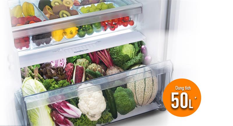 Ngăn rau củ quả kép giữ ẩm Fresh Safe kích thước lớn (dung tích lớn đến 50 Lít) giúp bảo quản rau củ tươi ngon như mới vừa mua về.