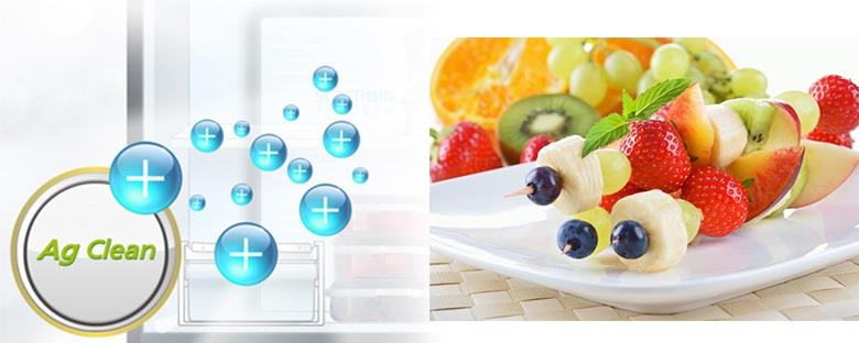 Tủ lạnh với công nghệ Ag Clean sử dụng các tinh thể bạc Ag+ sẽ loại bỏ mùi hôi cũng như vi khuẩn gây hại, trả lại không gian trong lành cho thực phẩm bên trong tủ. Giờ đây bạn có thể yên tâm hơn khi thực phẩm luôn được bảo đảm an toàn cho sức khỏe cũng như không gây ra mùi hôi khó chịu lẫn vào nhau.