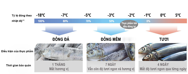 Ở nhiệt độ -3 độ C, ngăn cấp đông mềm sẽ giúp đông lạnh bề mặt thịt, cá, nhờ vậy chúng có thể giữ nguyên được các dưỡng chất và không bị đóng băng. Giúp cho những bữa ăn của bạn luôn trọn vẹn hương vị thơm ngon mà không phải tốn nhiều thời gian rã đông trước khi nấu nướng.