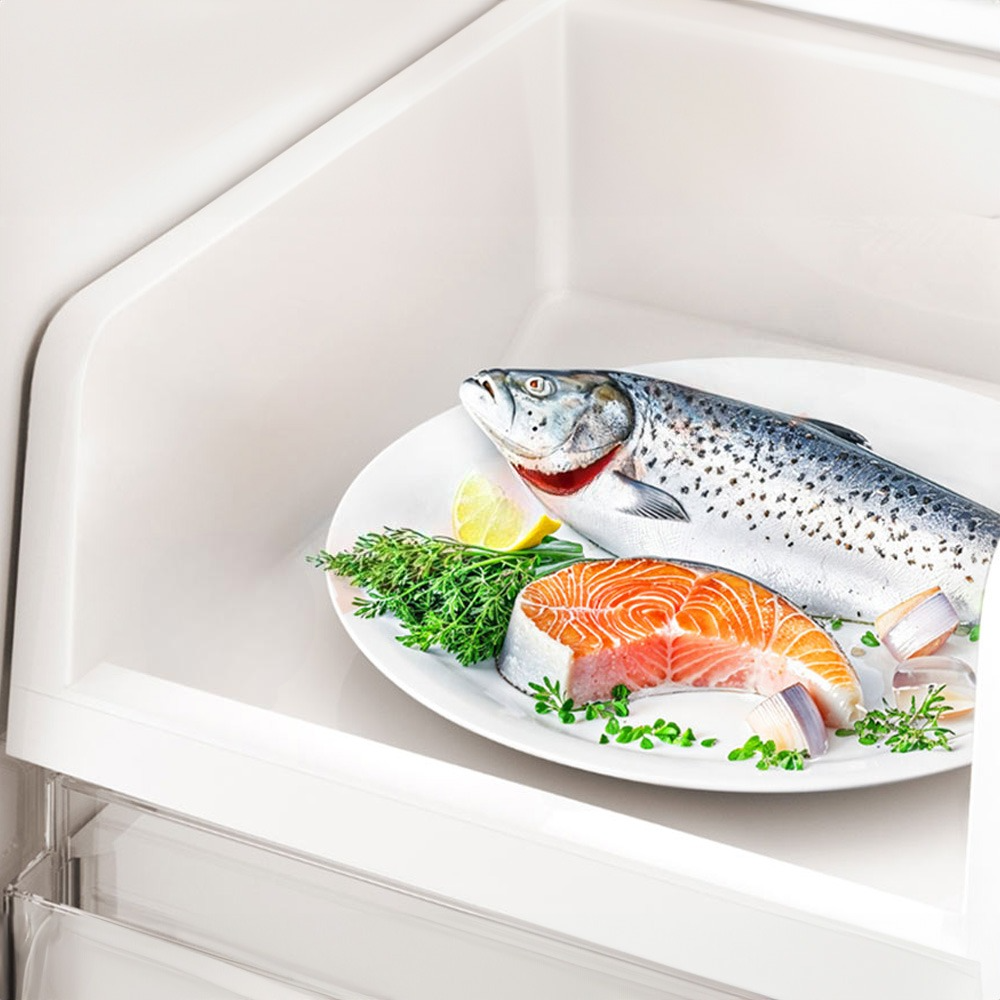 Cả khu vực làm mát và cấp đông của tủ lạnh đều tích hợp mô-đun kháng khuẩn và khử mùi ion bạc, giúp tiêu diệt vi khuẩn và loại bỏ mùi hôi hiệu quả. Khu vực làm mát khử mùi đến 99.99%, còn khu vực cấp đông giảm mùi trimethylamine và methylmercaptan lần lượt 93% và 95%, bảo vệ thực phẩm đông lạnh như thịt và cá khỏi bị hỏng và mất mùi.