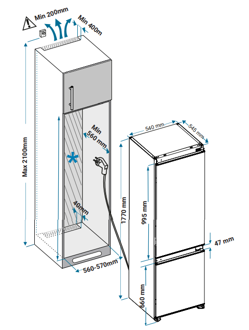 Với kích thước 540 x 545 x 1.770 mm và trọng lượng 49.5kg, tủ lạnh dễ dàng lắp đặt mà không chiếm quá nhiều không gian, đồng thời mang lại tính thẩm mỹ cao cho căn bếp. Bề mặt tủ được làm từ chất liệu cao cấp, dễ lau chùi, giữ cho tủ luôn sạch sẽ và bền đẹp qua thời gian.