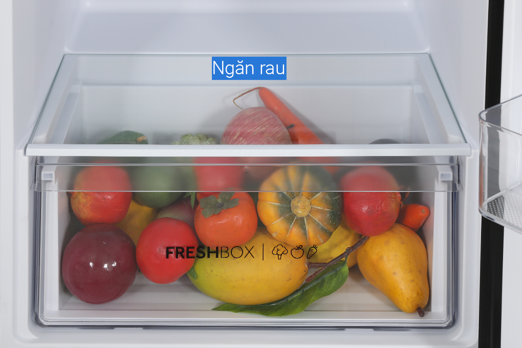 Ngăn lạnh có dung tích 134 lít, gồm có kệ chia làm các ngăn và hộc đựng rau củ quả. Ngoài ra, cánh cửa tủ còn được thiết kế thêm 3 khay chứa tiện lợi cho việc đặt đồ hộp và các loại đồ uống.
