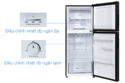 Bảng điều khiển được thiết kế bên trong mỗi ngăn tủ. Trong đó, ngăn đá sử dụng bảng điều khiển nút trượt trái phải và ngăn lạnh sử dụng bảng điều khiển bằng nút vặn. Bạn có thể thao tác dễ dàng mỗi khi sử dụng.
