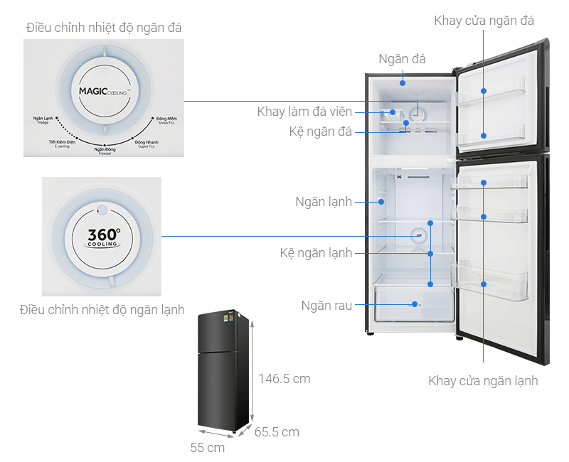 Độc đáo và tiện lợi với ngăn làm đông đa chức năng MagicCooling có khả năng tùy chỉnh độ lạnh