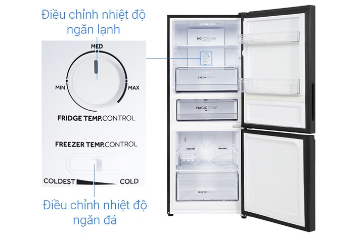 – Công nghệ làm lạnh đa chiều: các luồng khí lạnh phân bổ, lan tỏa đến mọi ngóc ngách trong tủ giúp rút ngắn thời gian làm lạnh, duy trì nhiệt độ và độ ẩm ổn định giữ thực phẩm tươi lâu hơn.