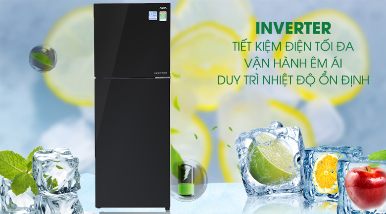 Chi phí tiền điện là một trong những vấn đề khiến người dùng quan ngại sử dụng tủ lạnh để bảo quản thực phẩm. Nhưng tủ lạnh Aqua này được trang bị công nghệ Inverter tiên tiến nên đảm bảo hiệu quả tiết kiệm điện năng tối ưu cho người dùng. Đồng thời, công nghệ này còn giúp hoạt động êm ái, duy trì độ lạnh ổn định để thực phẩm tươi ngon lâu hơn.