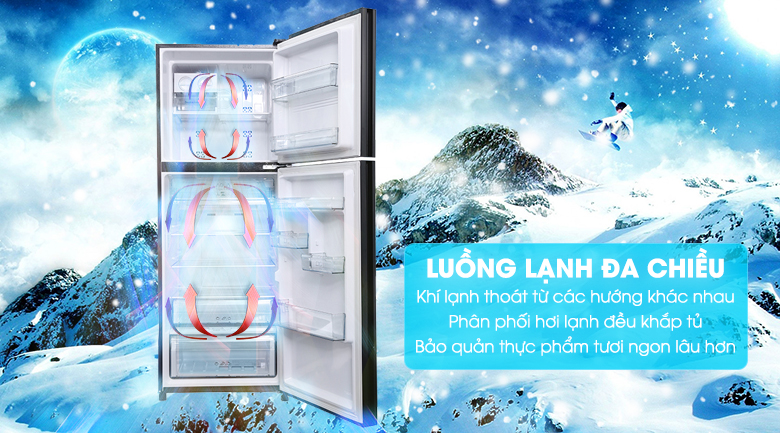 Công nghệ luồng khí lạnh đa chiều trên tủ lạnh Aqua cho phép khí lạnh dễ dàng thoát từ các hướng khác nhau. Từ đó, làm lạnh nhanh chóng và đảm bảo phân phối hơi lạnh đồng đều và đầy đủ đến tất cả các ngăn, thực phẩm sẽ được bảo quản tốt nhất dù bạn đặt ở bất kỳ ngóc ngách nào.