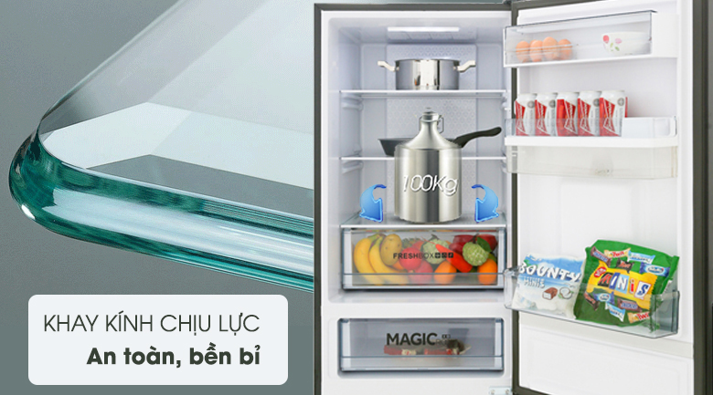 Tủ lạnh Aqua AQR-IW378EB (SW) thiết kế các khay kính chịu lực bền chắc nên bạn có thể dễ dàng sắp xếp nhiều loại thực phẩm vào tủ mà không lo khay bị vỡ hỏng. Cùng với đó, chất liệu kính chịu lực còn tăng độ sang trọng cho nội thất tủ và vệ sinh, làm sạch cũng dễ dàng hơn.