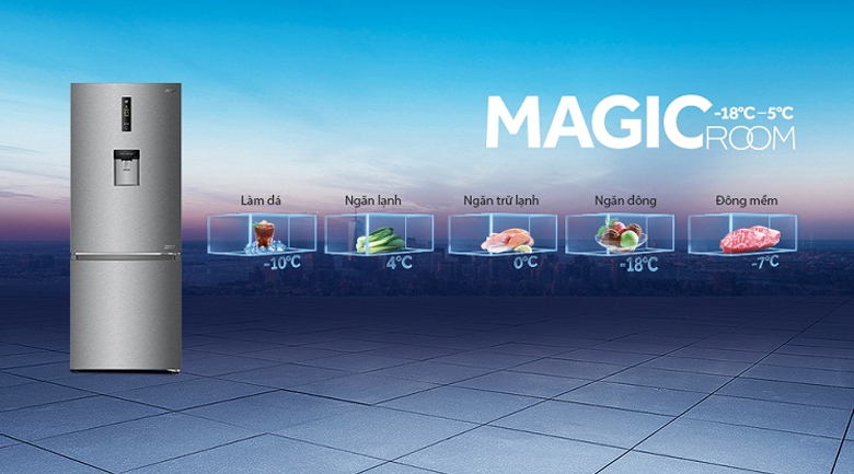 Với ngăn tùy chỉnh nhiệt độ Magic Room, bạn có thể tùy chỉnh thay đổi nhiệt độ ngăn từ -18 đến 5 độ C chuyển đổi thành ngăn đông, ngăn lạnh hoặc ngăn đông mềm đáp ứng nhu cầu sử dụng đa dạng, bảo quản phong phú các loại thực phẩm của mỗi gia đình.