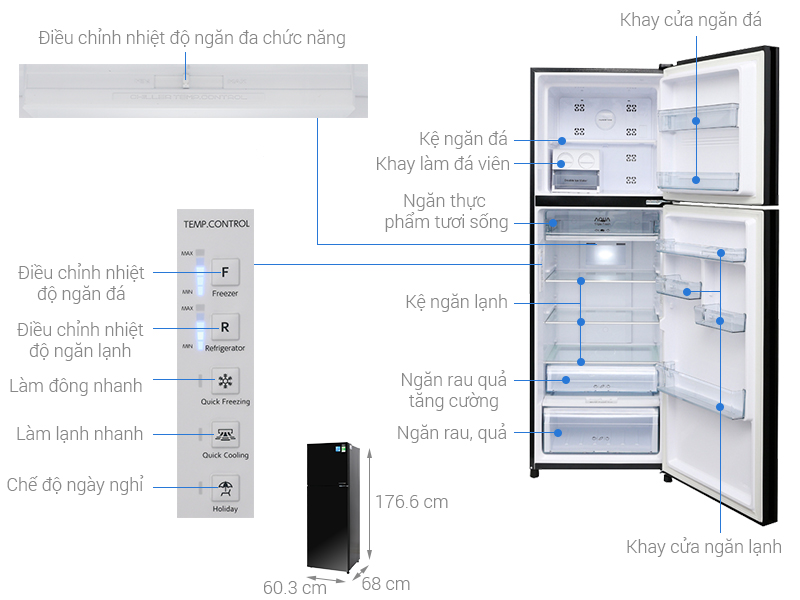 • Chế độ ngày nghỉ Holiday, giúp tủ lạnh không có mùi ẩm mốc khi không sử dụng trong thời gian dài.
