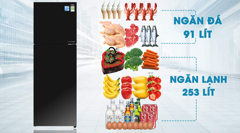 Đây là tủ lạnh 2 cửa với ngăn đá trên điển hình, có dung tích lên đến 373 lít, rất phù hợp cho các gia đình 3 – 4 người.