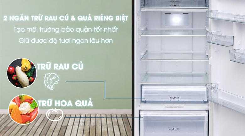Ngăn rau củ và ngăn trái cây riêng biệt