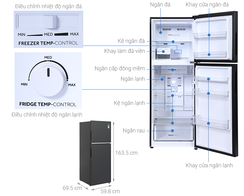– Nhiều loại thực phẩm có thể được lưu trữ trong ngăn lạnh sở hữu mức dung tích lớn lên đến 267 lít. Điều này giúp bạn dễ dàng tổ chức và sắp xếp thực phẩm một cách hợp lý, đảm bảo mọi món ăn của bạn luôn tươi ngon và sẵn sàng sử dụng.