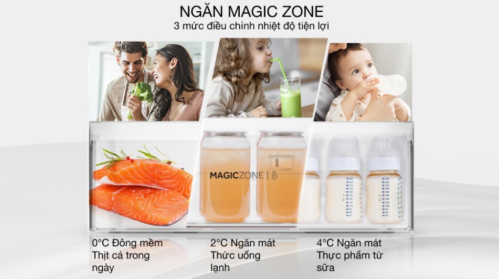 – Ngăn Magic Zone có thể điều chỉnh 3 mức nhiệt độ linh hoạt, thuận tiện điều khiển để thay đổi nhiệt độ theo mong muốn: