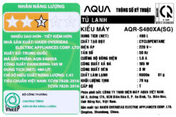 Aqua Inverter AQR-S480XA(SG) sở hữu dung tích 480 lít, trong đó ngăn đá là 197 lít và ngăn lạnh 283 lít, đáp ứng thoải mái nhu cầu lưu trữ thực phẩm cho những gia đình đông người, có từ 4 – 5 thành viên.