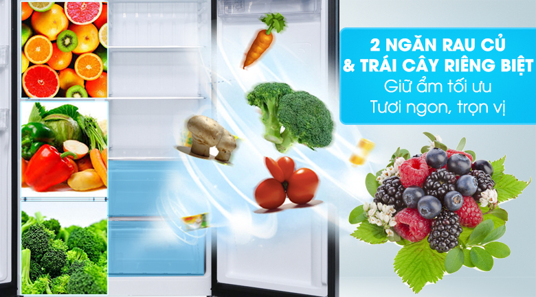 Độc đáo với thiết kế 2 ngăn trữ rau & quả riêng biệt để cung cấp mức nhiệt lý tưởng cho mỗi ngăn. Nhờ đó, duy trì độ ẩm ổn định để rau củ và trái cây được bảo quản tươi ngon, mọng nước như lúc mới mua về.