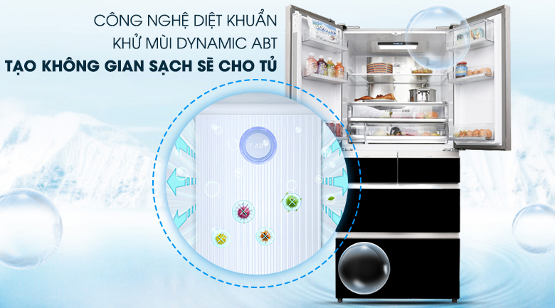 Công nghệ Dynamic ABT tiêu diệt mọi vi khuẩn và mùi hôi, tạo không gian trong lành, sạch sẽ cho thực phẩm