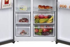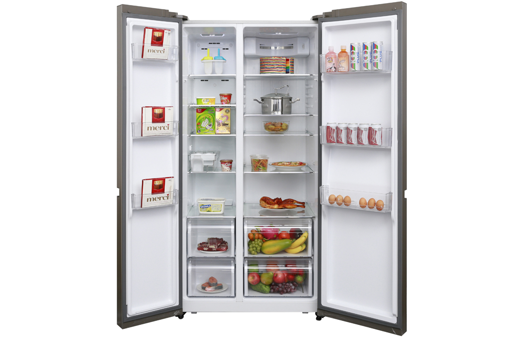 Thiết kế kiểu dáng side by side với mặt kính cường lực sang trọng và lịch lãm, tủ lạnh Aqua AQR-IG585AS SG sẽ làm nổi bật lên gian bếp của gia đình bạn. Hơn nữa, với dung tích cực lớn, chiếc tủ lạnh Aqua 565 lít mang đến không gian lưu trữ thực phẩm thoải mái cho gia đình trên 5 thành viên.